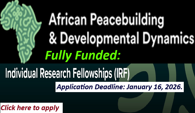 African Peacebuilding and Developmental Dynamics (APDD) Individual Research Fellowships: Fully Funded.