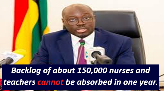 The Finance Minister, Dr. Cassiel Ato Forson, stated that the government cannot immediately employ all the more than 150,000 nurses and teachers currently awaiting recruitment into the public sector.