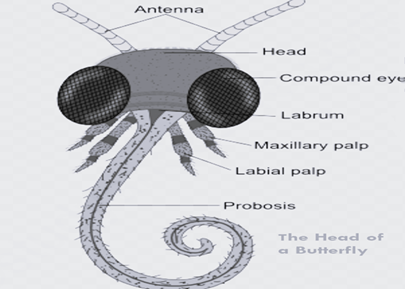 - Mouthparts are modified as a coiled proboscis for sucking.