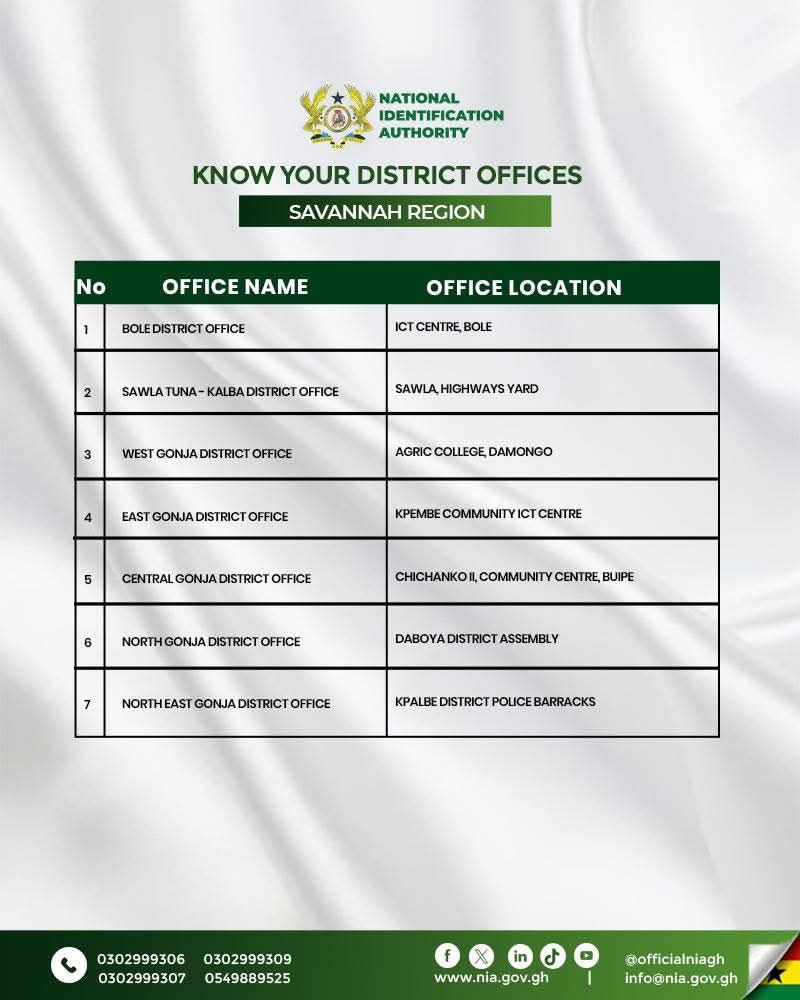 National Identification Authority (NIA) District Offices in the Oti and Savannah Regions.