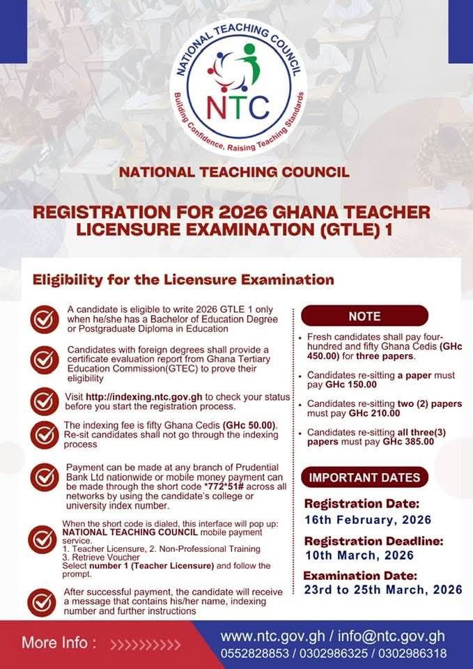NTC Has Open Registration For 2026 Ghana Teacher Licensure Examination (GTLE) 1.