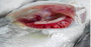 Cut the specimen transversely along the anterior point of attachment of the pelvic fin and discard the tail end portion. Carefully cut and remove the operculum on one side of the other portion with a sharp knife