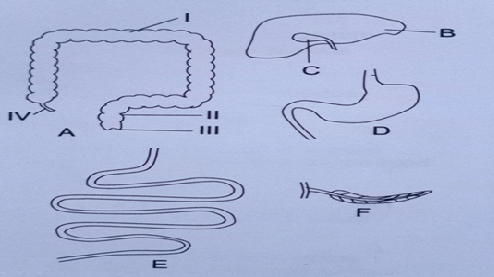 - Name the organs labelled A to F